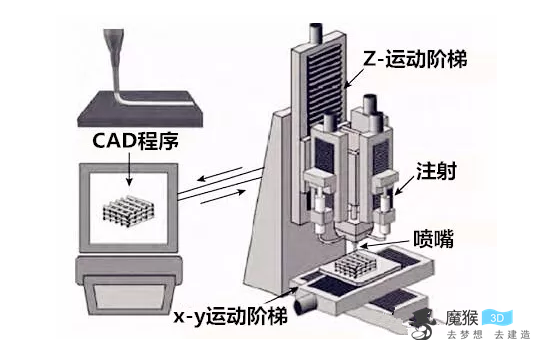 FDM具有成本低、結構簡單、原材料的利用效率高且沒有毒氣或化學物質的污染等優勢,但也具有制備出的原型表面有較明顯的條紋、與截面垂直的方向強度小、成型速度相對較慢、噴頭容易發生堵塞,不便維護的劣勢。 2直寫自由成型(DIW) 直寫自由成型技術,將陶瓷制備成具有固化特性的陶瓷懸浮液,計算機控制的Z方向上的漿料輸送裝置在X-Y平面內移動,同時從針頭擠出陶瓷懸浮液,其在pH值、光照、熱輻射等固化因素作用下實現固化,逐層堆積形成陶瓷部件毛坯。