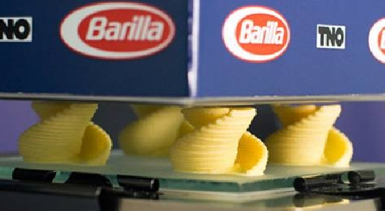 意大利生廠商Barilla展示了他們的第一臺3D意大利面打印機。這臺打印機可以在2分鐘內,打印成型意大利面。這種設備主要面向餐飲業(yè),生廠商稱這臺設備對于餐廳和意大利面愛好者而言堪稱完美。打印所需的原料是水和面粉,利用FDM技術,使面漿層層堆疊成所需的形狀。目前,設備還處于原型機階段,生廠商稱有望今年晚些時候推出成型設備。